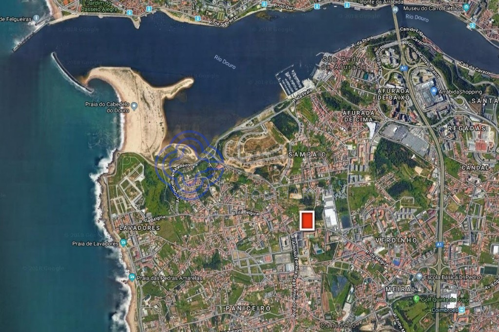Terrain urbain de 4 566 m² dans le centre de Canidelo, à 1300 m du Douro et à 1900 m de la plage de Canidelo.