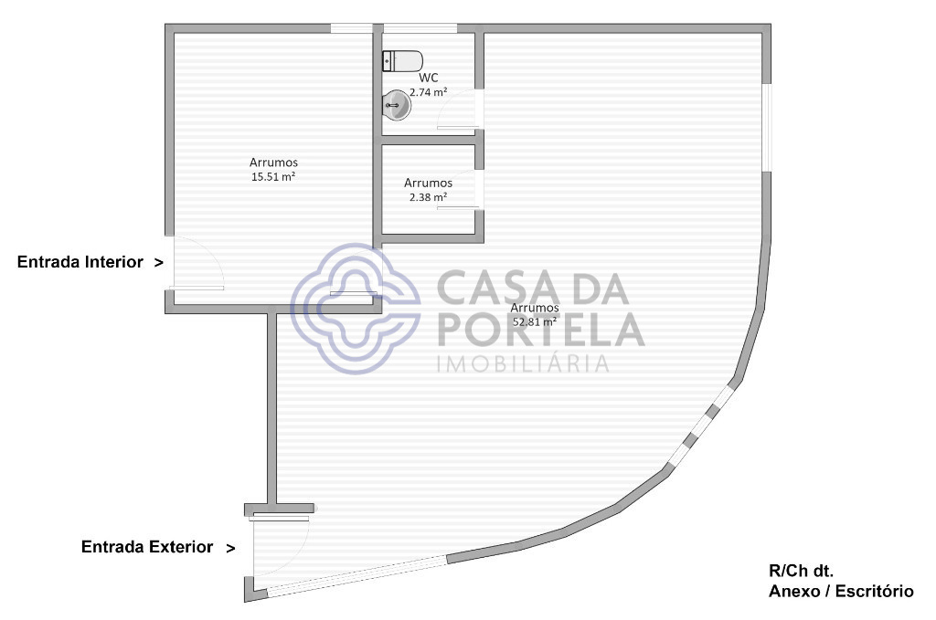 Cette propriété se compose de 2 étages; Le rez-de-chaussée a une pièce avec 79 m2 et toilette, et peut avoir différents usages (bureau de profession libérale, studio, salle de tutorat, etc.).